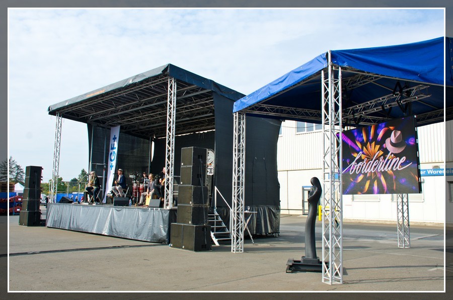 Die mobile Anhängerbühne der Marke Stagemobil MML mit 62 m2 überdachter