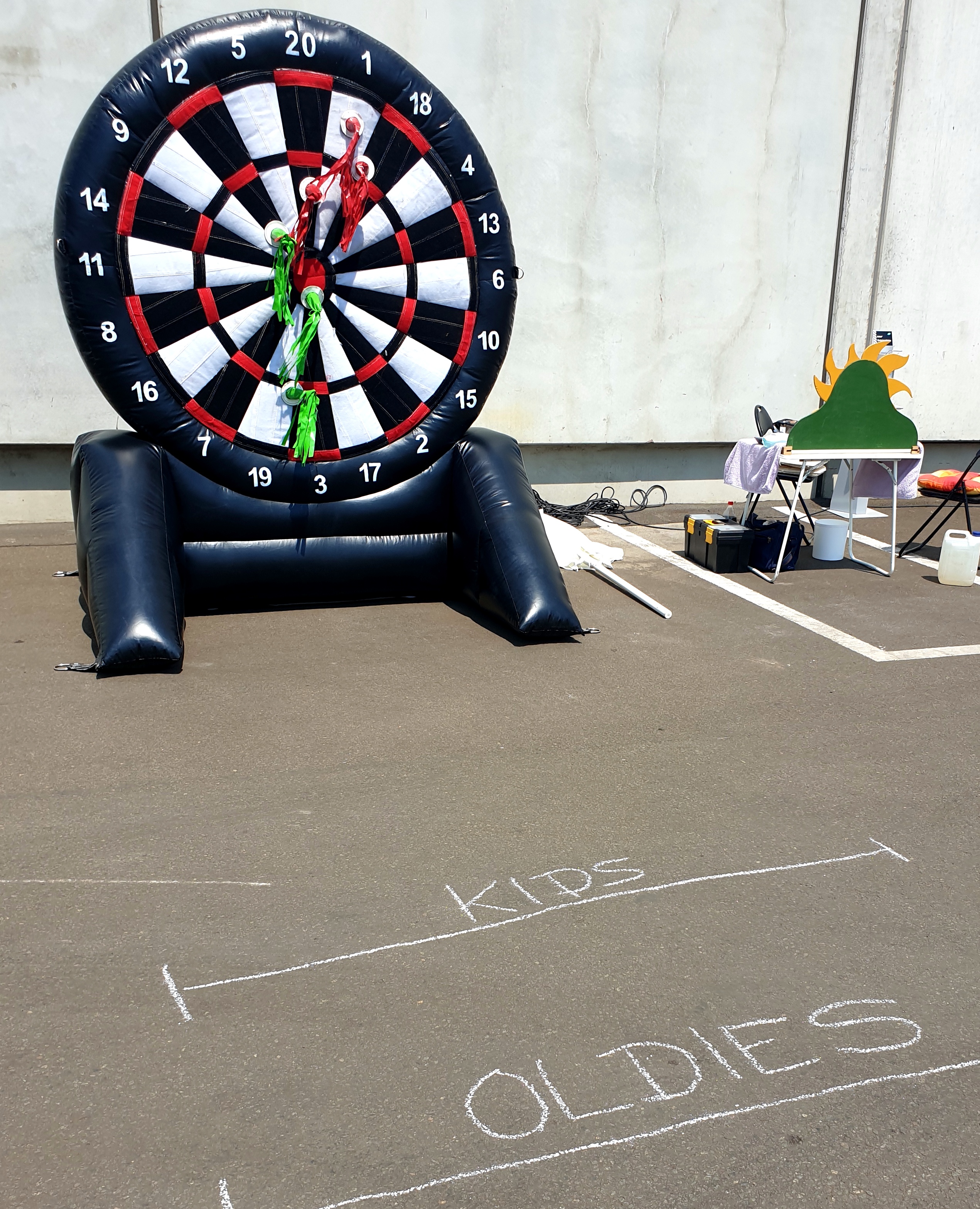 Unser aufblasbarer Dart zur Miete überzeugt durch stabile, hochwertige Materialien und einfache Handhabung. Die großen Zielscheiben sorgen für einen sicheren Spielspaß, während die Soft-Pfeile oder Velcro-Bälle das Risiko von Verletzungen minimieren.