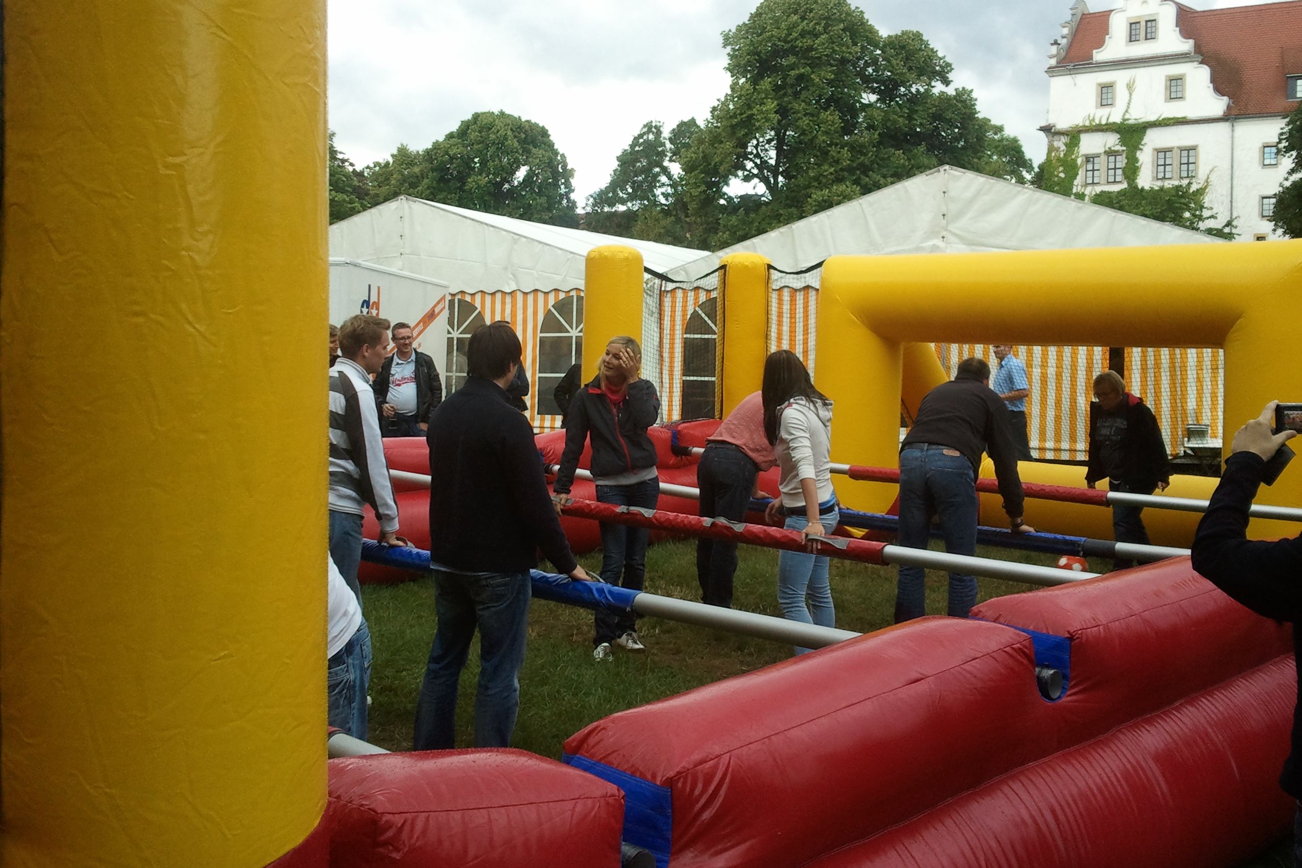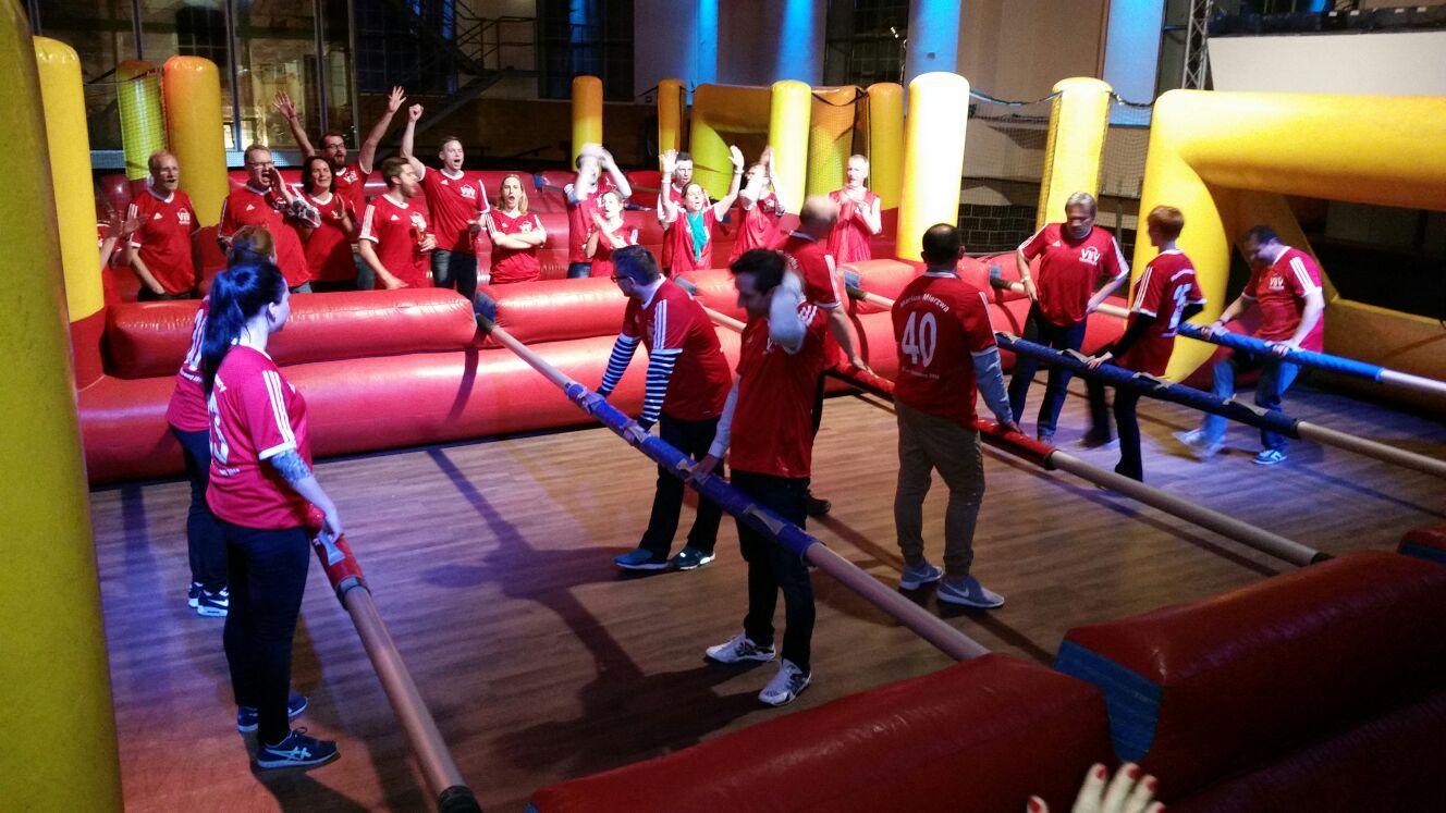 Bei den Human Footballtable / Menschenkicker / Human Soccer sind bis zu 5 gegen 5 Spieler