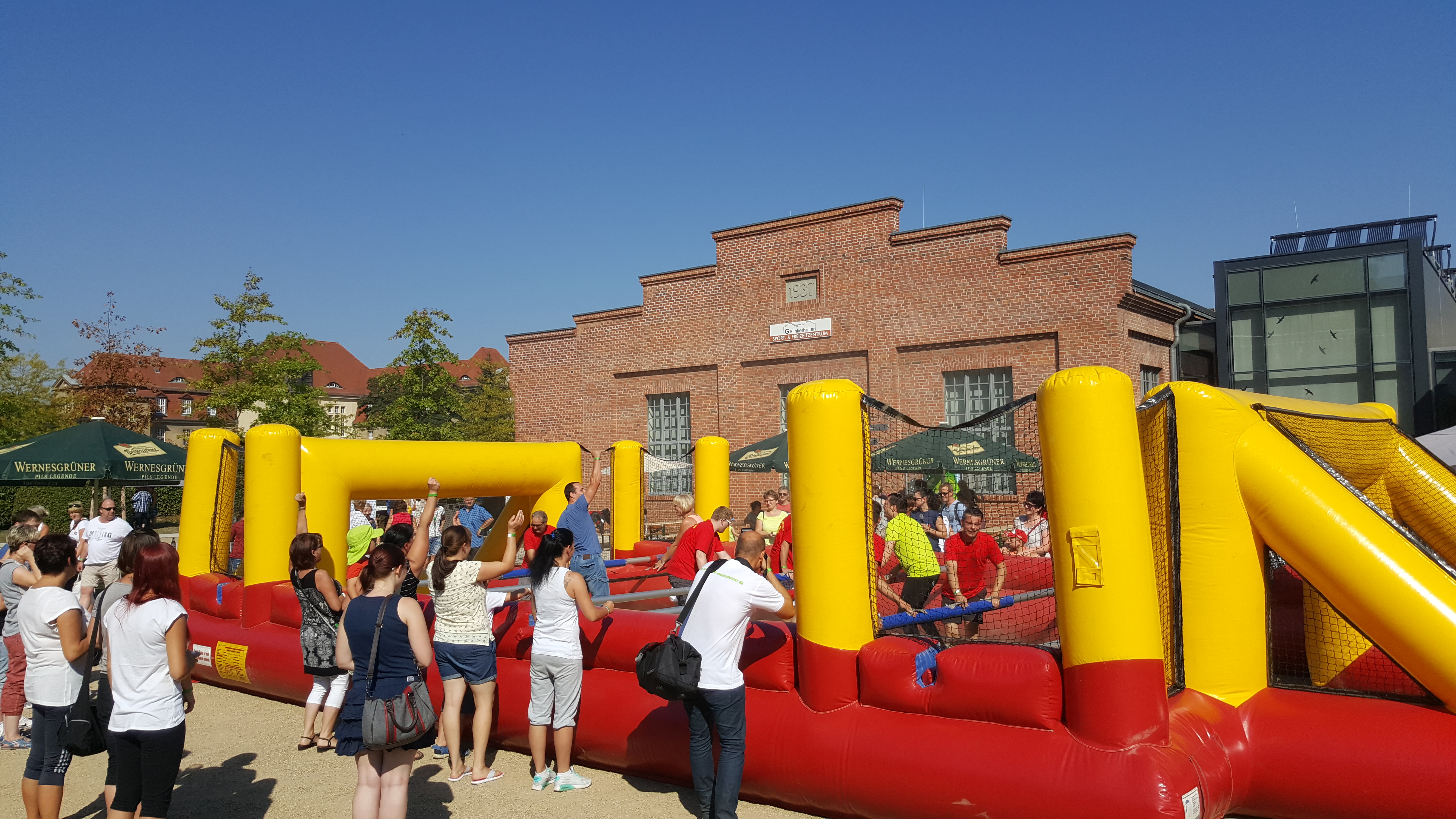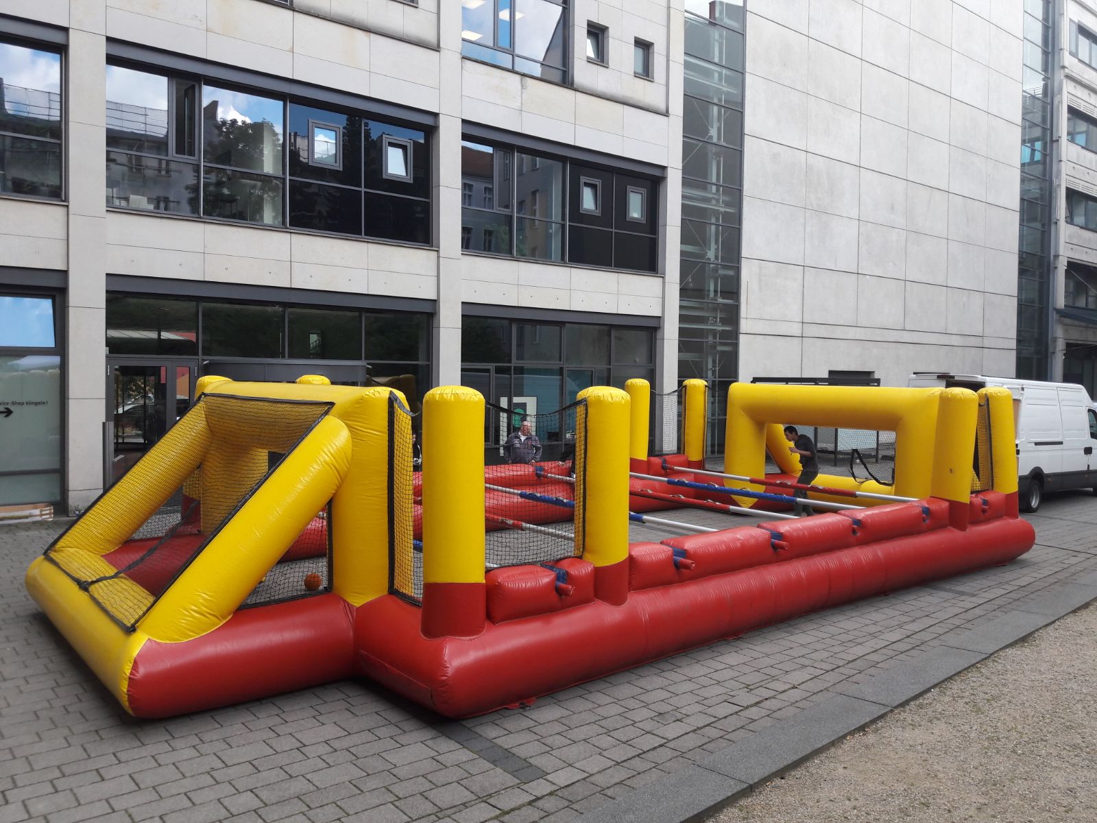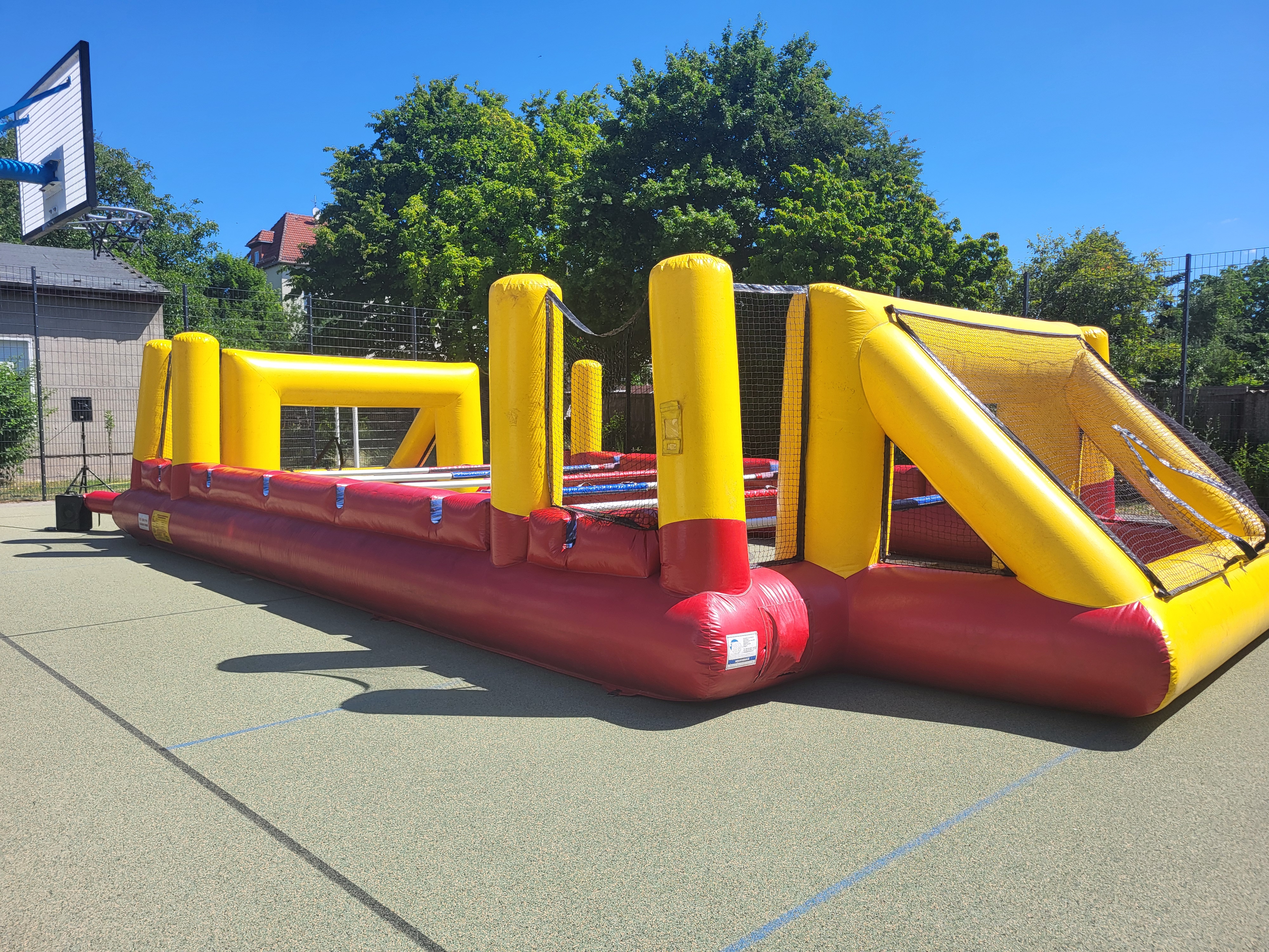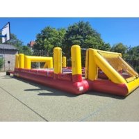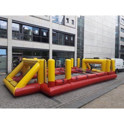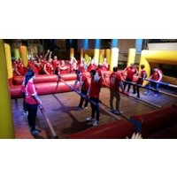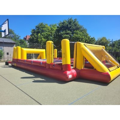 „ Human Footballtable “ (auch bekannt als Menschenkicker oder Human Table Soccer ) ist eine lustige und teamorientierte Freizeitaktivität, bei der Menschen selbst die „Spieler“ eines Tischkickers (auch eines Tischfußballspiels) darstellen. Es handelt sich dabei oft um eine aufblasbare Arena oder ein fest aufgebautes Spielfeld, in dem sich Menschen wie beim Tischkicker entlang von festen Stangen bewegen. Hier ist eine einfache Erklärung, wie es funktioniert:
