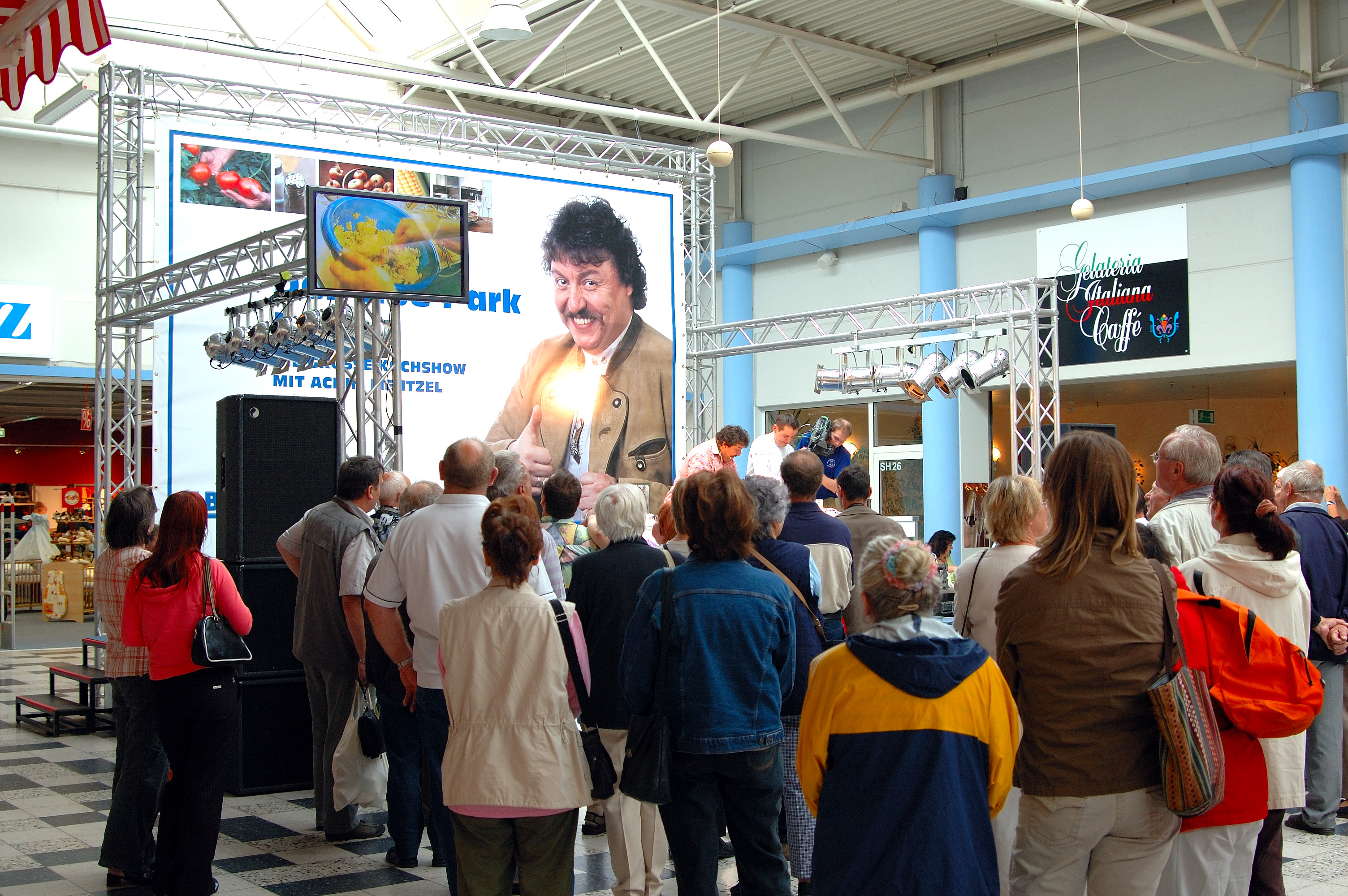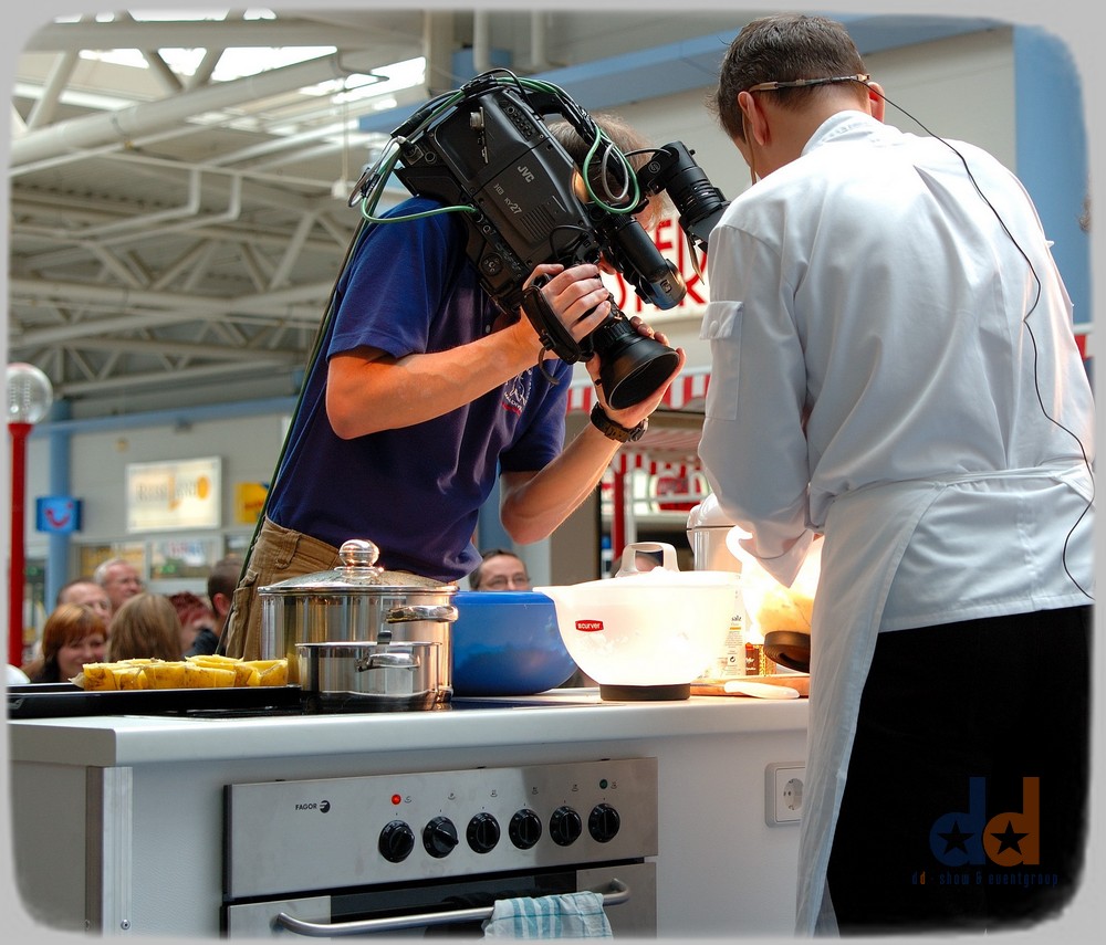 Die ideale mobile Küche für Ihr Event. Diese mobile Show-Küche wurde extra für Events zum Show-Kochen konzipiert. Kein extra Wasser bzw. Abwasseranschluss notwendig. An unserer Küche kochten schon verschiedene prominente wie zB Achim Menzel.