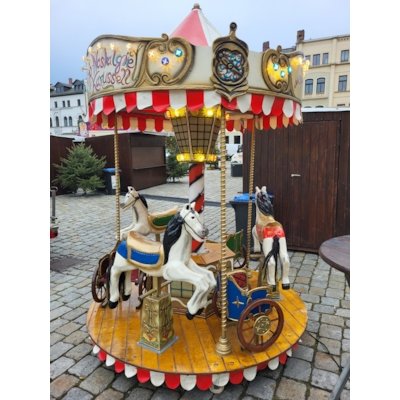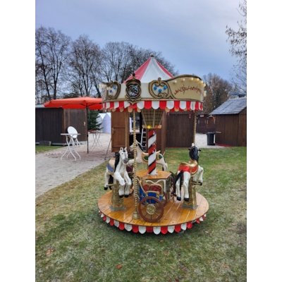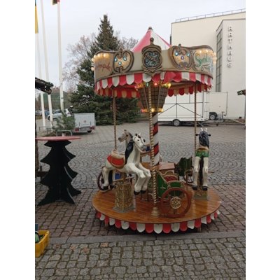Das Kinderkarussell Pferdchen überzeugt durch sein nostalgisches Design, sichere Sitzplätze und einen ruhigen, kindgerechten Fahrbetrieb. Dank seiner kompakten Größe eignet es sich sowohl für Indoor- als auch Outdoor-Events.