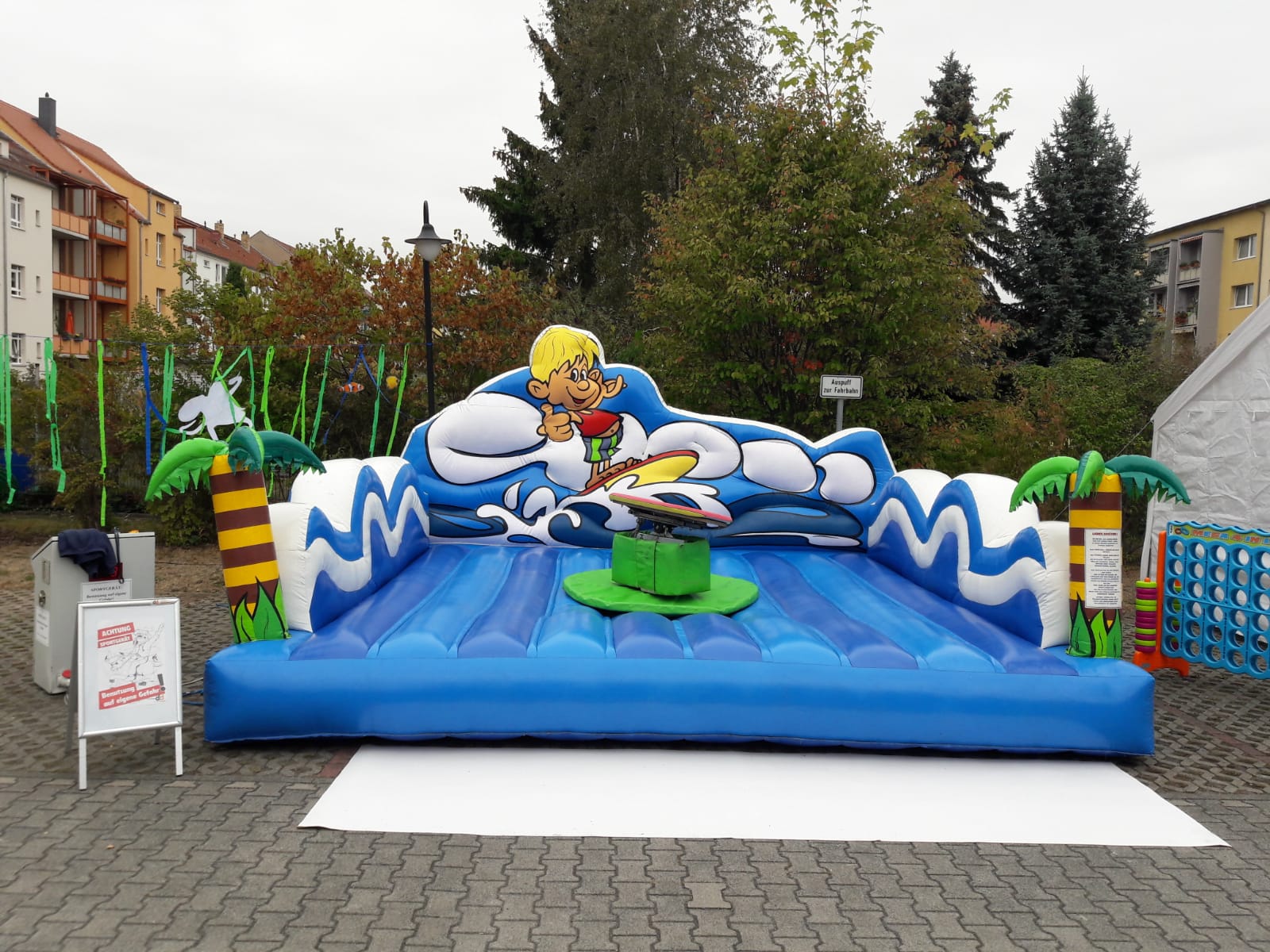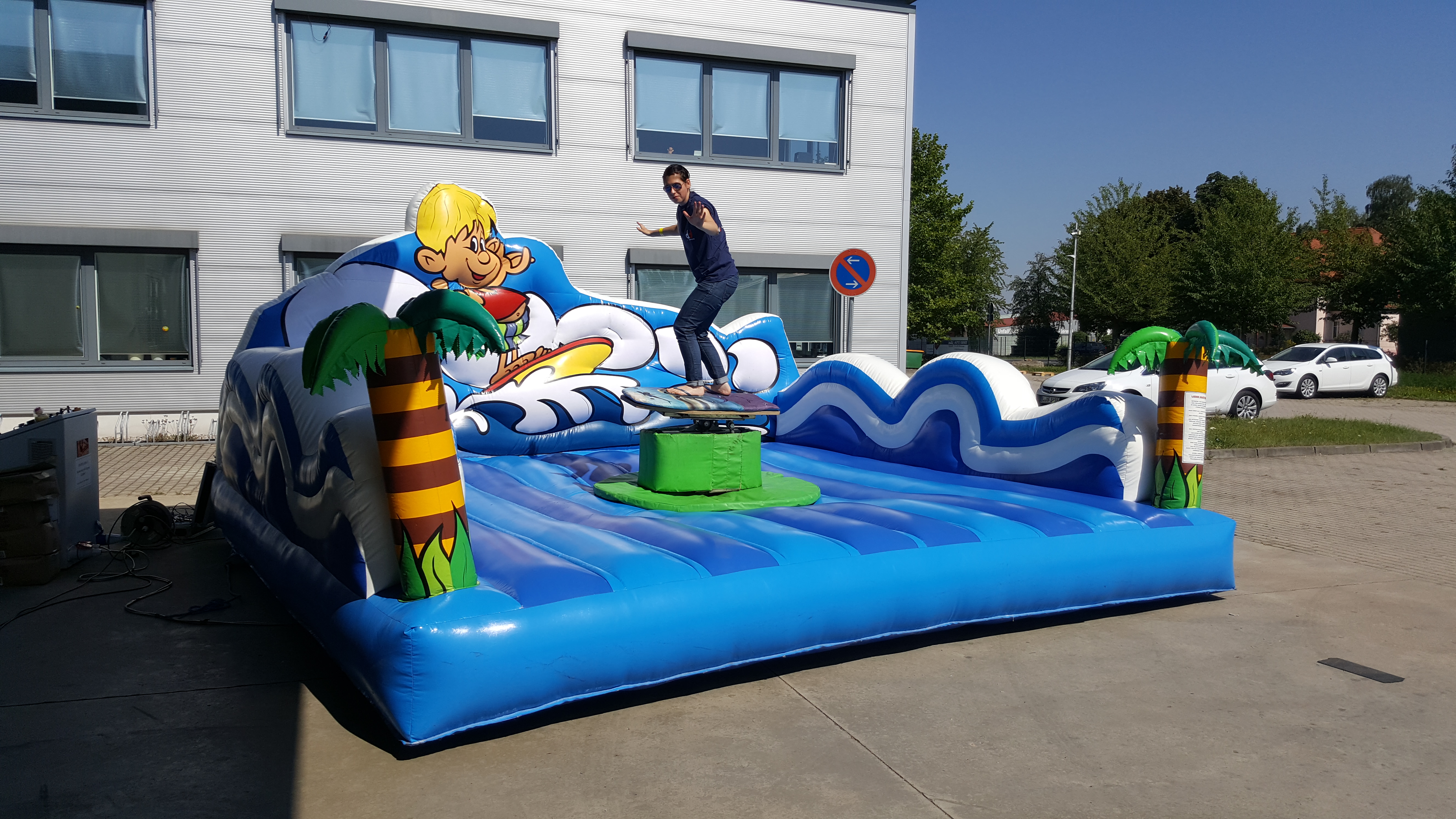 Sie wollen Ihr Event zu einem unvergesslichen Erlebnis machen? Unser Surfsimulator bringt Wellenfeeling pur direkt zu Ihnen! Ob Kinder, Jugendliche oder Erwachsene – hier kann jeder das Surfen ausprobieren, ohne ins Wasser zu müssen. Perfekt für Firmenfeiern, Stadtfeste, Familienfeste oder Sportevents.